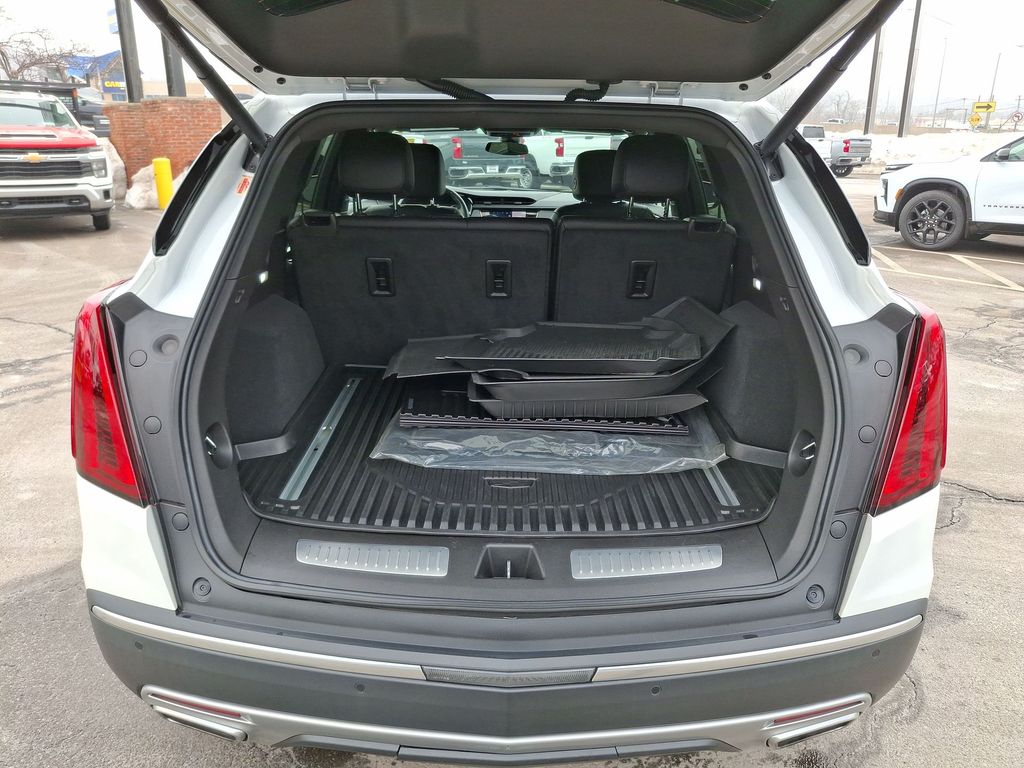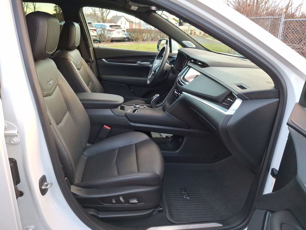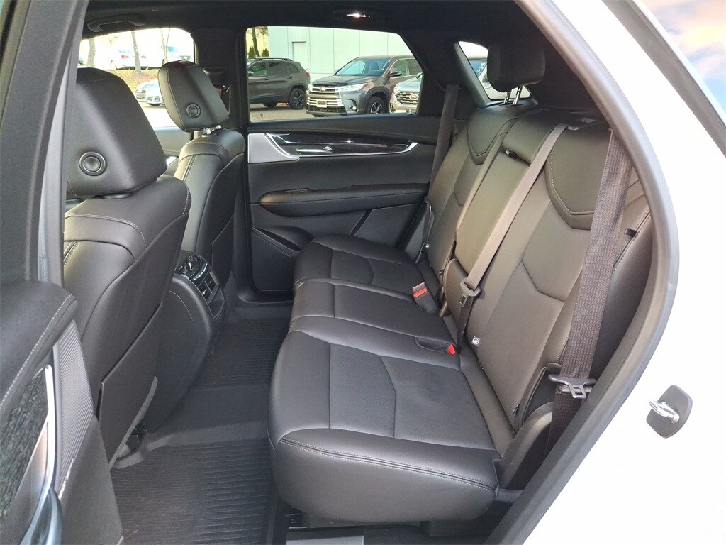 2-Way Power Driver Lumbar Control Seat Adjuster, 2-Way Power Passenger Lumbar Control Seat Adjuster, 4-Wheel Disc Brakes, 4-Wheel Independent Suspension, ABS brakes, All-Weather Integrated Cargo Liner (LPO), Alloy wheels, AM/FM radio: SiriusXM, Apple CarPlay/Android Auto, Audio memory, Auto High-beam Headlights, Auto-dimming door mirrors, Auto-dimming Rear-View mirror, Automatic Dual-Zone Climate Control, Automatic Emergency Braking, Bose Performance Series 14 Speakers System, Brake assist, Dual Driver Info Center Display Gauge Cluster, Electronic Stability Control, Exterior Parking Camera Rear, Four wheel independent suspension, Front & Rear Park Assist, Fully automatic headlights, Garage door transmitter, HD Rear Vision Camera, Heated door mirrors, Heated Driver & Front Passenger Seats, Heated steering wheel, Inside Rear-View Auto-Dimming Mirror, Leather Seating Surfaces w/Mini Perforated Inserts, Light Pipes in Doors Lighting Accent, Memory seat, Panic alarm, Power door mirrors, Power driver seat, Power Liftgate, Power moonroof: UltraView, Power steering, Power windows, Premium Luxury Package 1SD, Radio: Cadillac User Experience w/Embedded Nav, Rain sensing wipers, Remote keyless entry, Security system, SiriusXM w/360L, Speed-sensing steering, Spoiler, Steering wheel memory, Steering wheel mounted audio controls, Teen Driver, Traction control, Turn signal indicator mirrors, Wheels: 18" 6-Split Spoke Alloy.